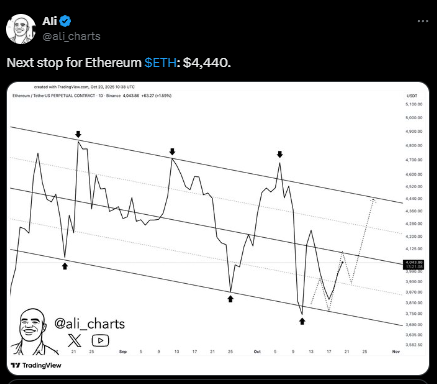 截至2025年10月21日撰稿时,以太坊价格徘徊在3,884美元附近。过去一个月累计跌幅已达13.37%,但值得注意的是,巨鲸持仓者仍保持信心,资金持续流入且DeFi生态活跃度未减。