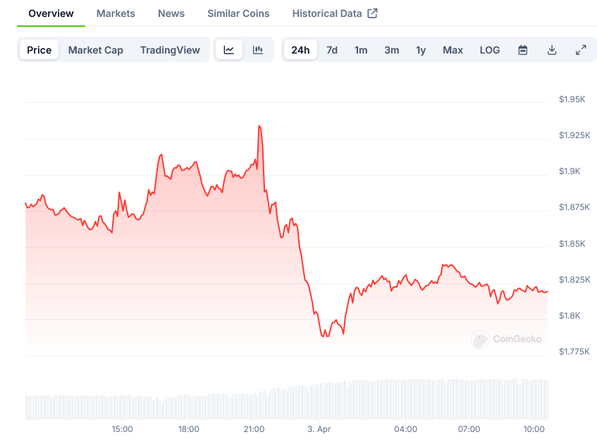 目前,以太坊面临的最直接挑战是突破1,865美元的阻力位。成功突破这一关口可能为价格向1,920美元甚至1,950美元迈进打开道路。如果以太坊能够突破1,950美元的阻力位,它可能会继续向心理上重要的2,000美元大关迈进,这将是其复苏旅程中的一个关键里程碑。