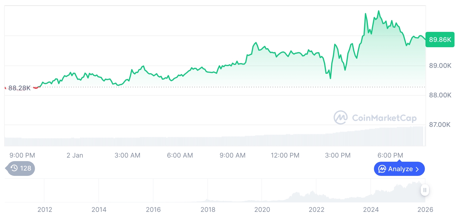 泰达公司首席执行官保罗·阿尔多伊诺指出,人工智能领域的调整可能蔓延至加密货币市场,特别是比特币。鉴于比特币与美股的高度关联性,2026年将成为其价格走势的关键年份。阿尔多伊诺预测,由于机构参与度提升,比特币跌幅可能较2022年熊市等历史性崩盘更为温和。截至12月,比特币已从逾10.6万美元的历史高点回落约30%。
