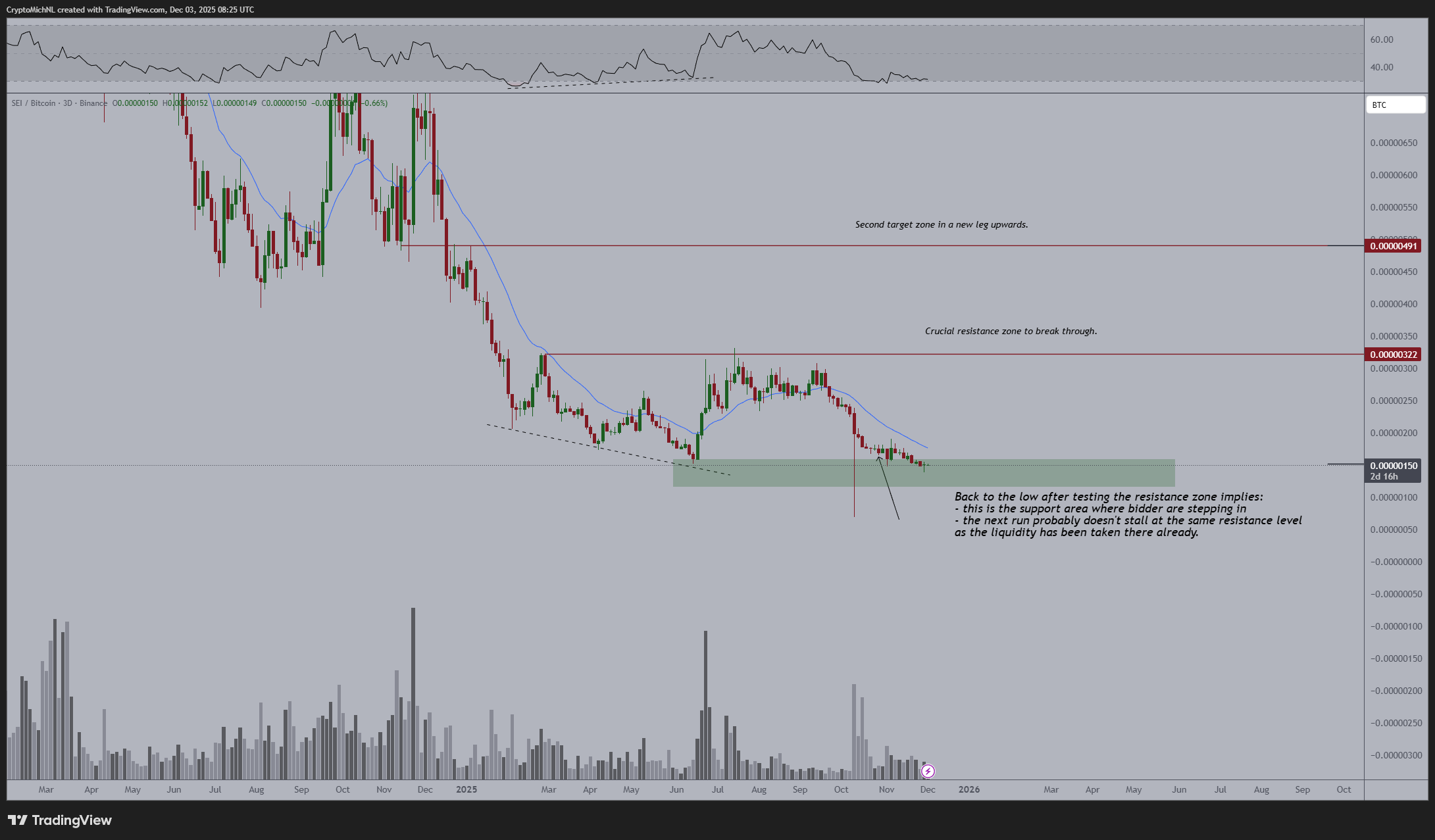 "SEI昨日出现最强劲反弹之一。考虑到市场情绪可能转变,我预判其将延续强势。