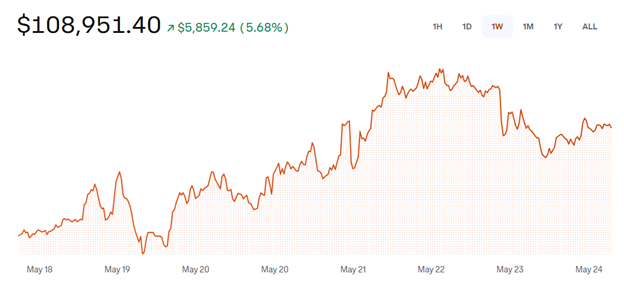 近期上涨并非一帆风顺。5月23日比特币下跌2.5%,导火索是美国前总统特朗普突然宣布拟提高进口关税(官方未证实与币价关联)。虽对传统市场和加密市场造成短暂冲击,但买家迅速进场稳定了价格。