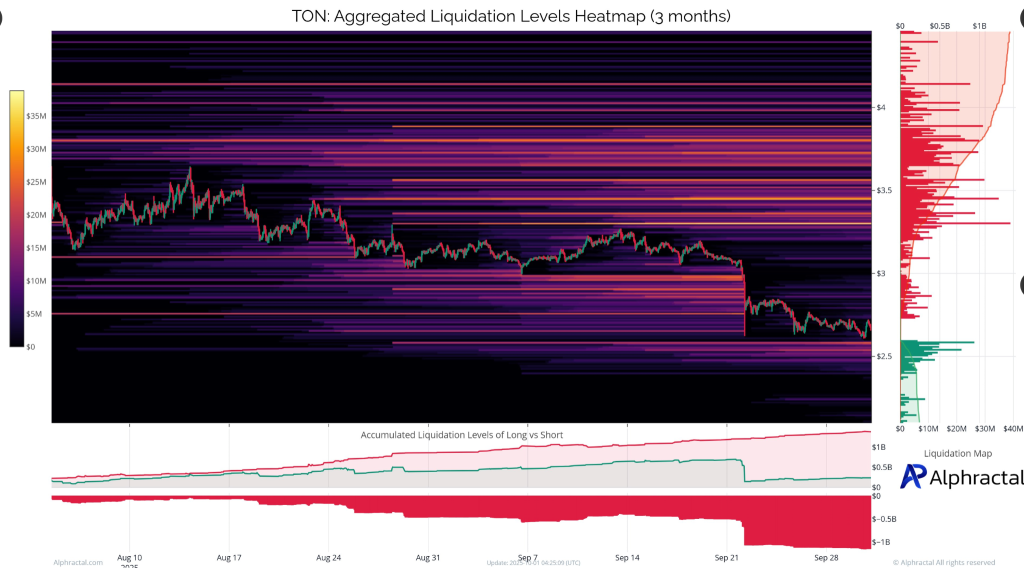 TON聚合清算水平热力图(3个月)| 来源:Alphractal