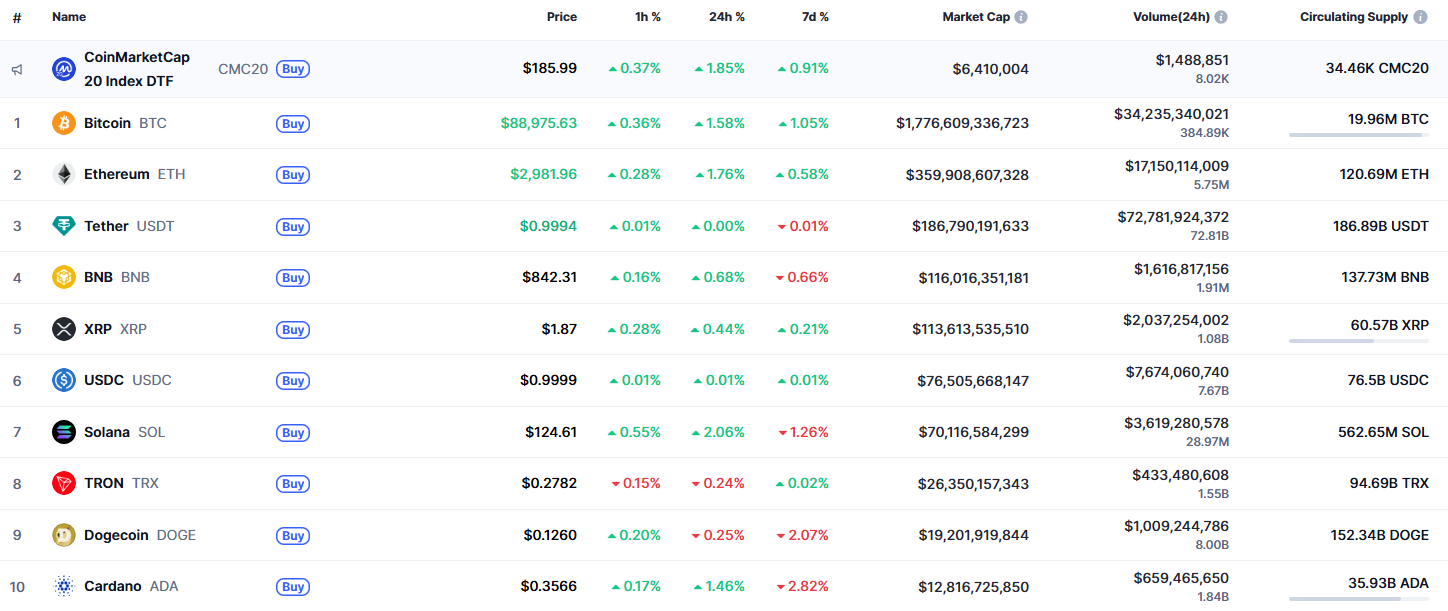 根据CoinMarketCap的数据,在经历数日回调后,今日市场呈现上涨态势。