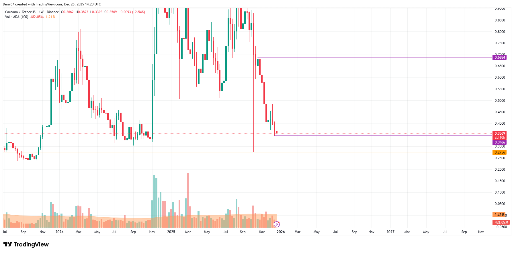 从更长时间框架观察,ADA汇率再次从0.3466美元支撑位反弹。但买方可能需要更长时间积蓄动能才能实现进一步突破。此种情形下,最可能出现在0.35-0.37美元区间横盘整理的走势。