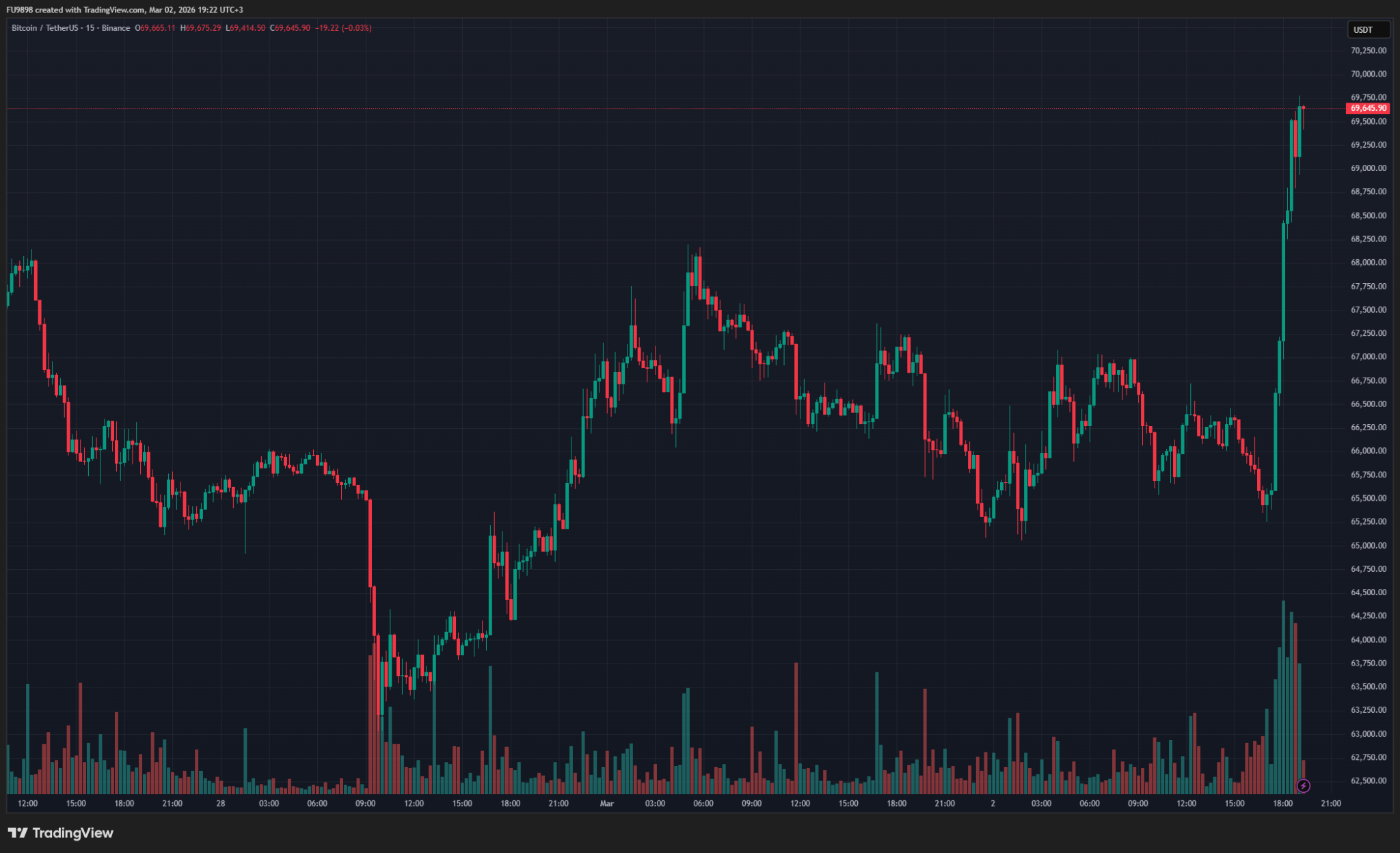在全球金融市场波动加剧的背景下,比特币呈现强劲上涨态势,逼近70,000美元关口。这一最大规模的加密货币周末曾跌至63,000美元低点,今日涨幅达6%,最高触及69,615美元。