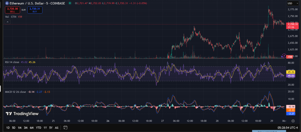 关键支撑位位于2700美元,若失守可能下探2675美元。上方阻力见于2775美元,成功突破后将挑战2820-3000美元区间。短期若无MACD转牛或RSI突破60,ETH可能维持震荡格局。