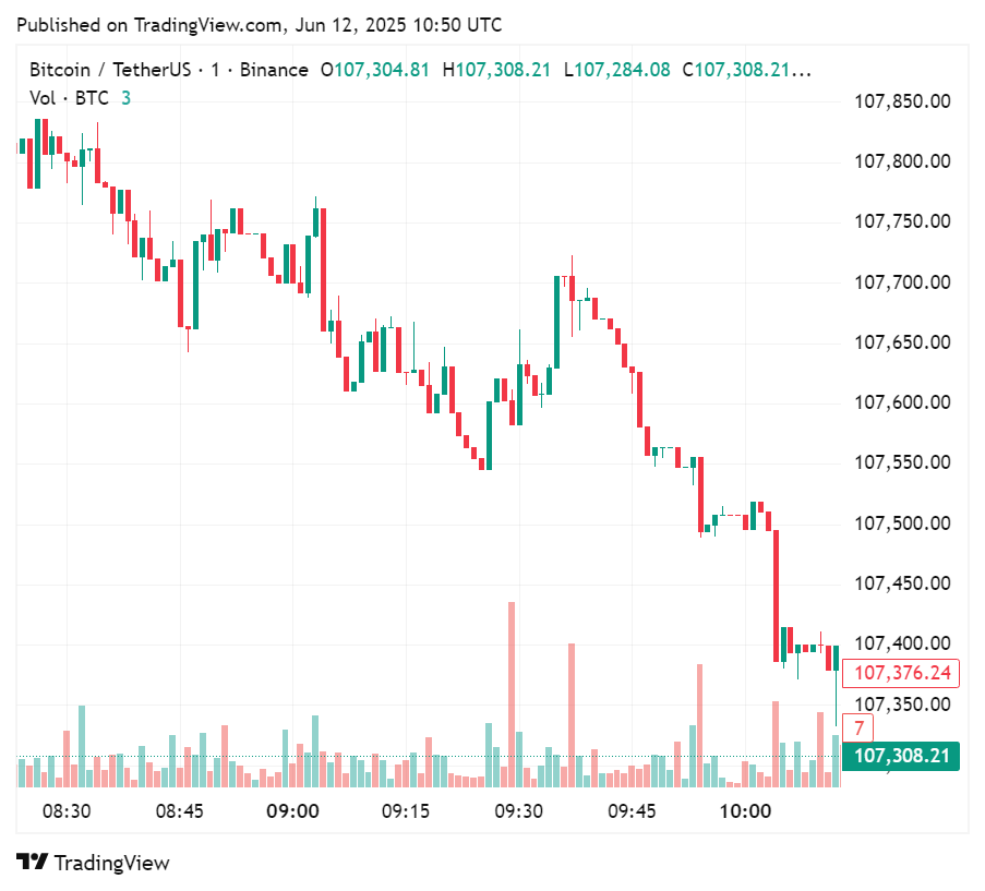 截至发稿时,比特币价格在过去24小时内微跌1.7%。当前这个市值最大的加密货币交易价格为107,405美元,24小时交易量达3410万美元,总市值2.13万亿美元。