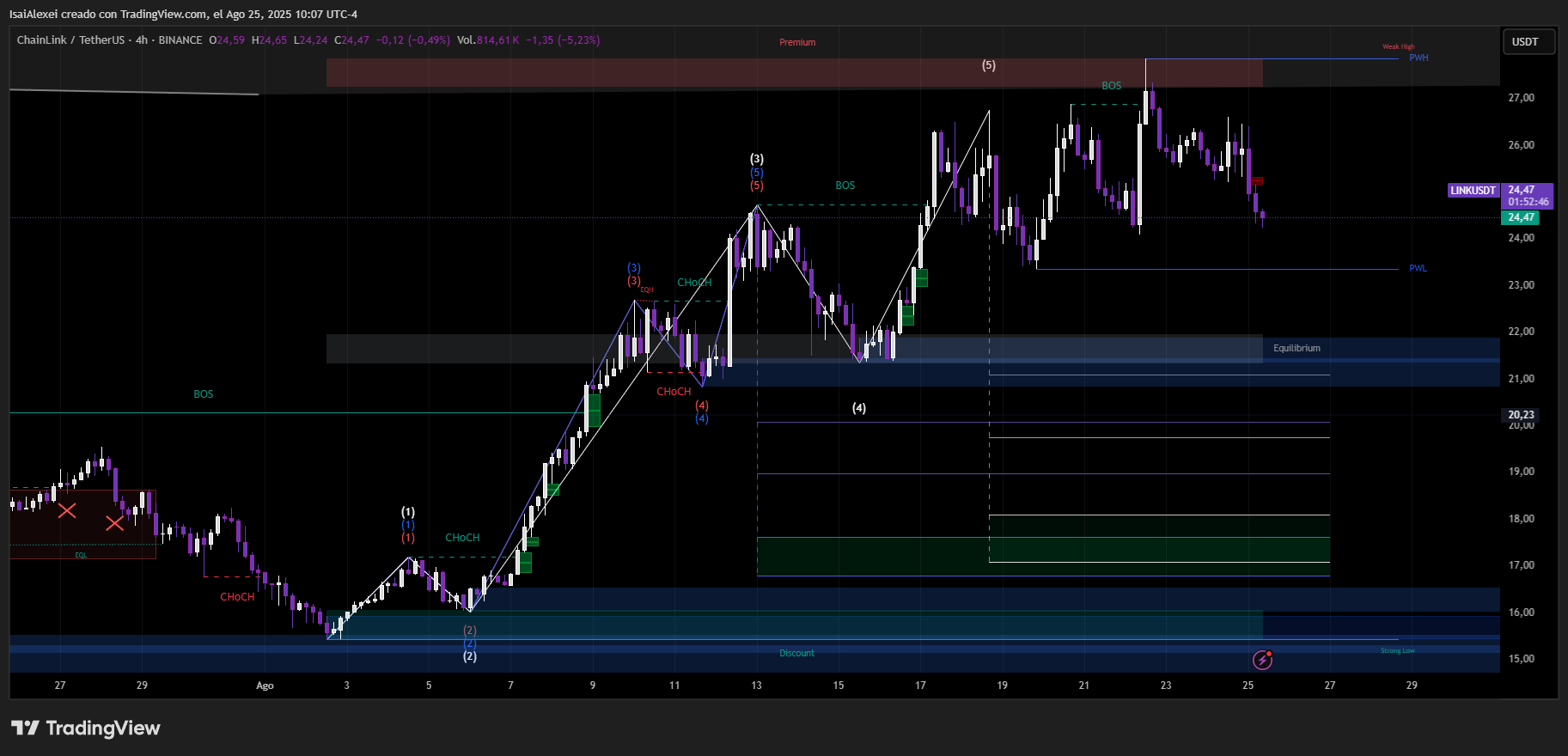 截至发稿,Chainlink代币(LINK)报价24.40美元,24小时跌幅4.8%,周线微跌0.55%。