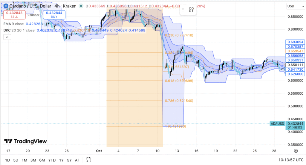 截至周四,卡尔达诺(ADA)交易价格约为0.43美元,周内涨幅近7%。经历数月下跌后,该代币持续在0.62至0.69美元的关键区间内震荡,该区域卖压始终稳固。