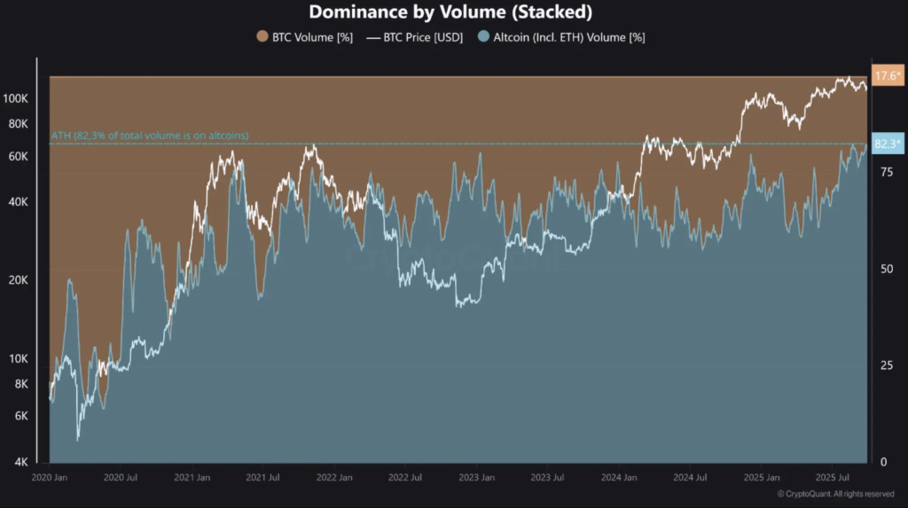 币安平台山寨币期货交易量占比已飙升至82.3%的历史高位,超过2021年76%的峰值水平。这一数据明确显示出交易者行为模式的转变,表明其对山寨币投资机会的信心正超越比特币。