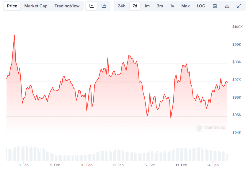过去一周,比特币价格在9.5万至10万美元间波动。截至发稿,比特币价格约为97000美元(数据来源:CoinGecko)。分析师对后市走势存在分歧。