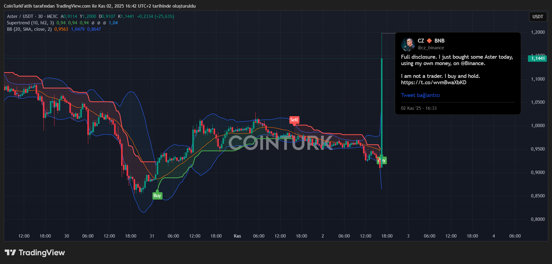 在CZ的强力站台下,Aster Coin正重现两位数增长的牛市盛况。这种重量级支持为加密爱好者注入了对项目前景的信心,各大论坛和社交平台的讨论热度持续升温。