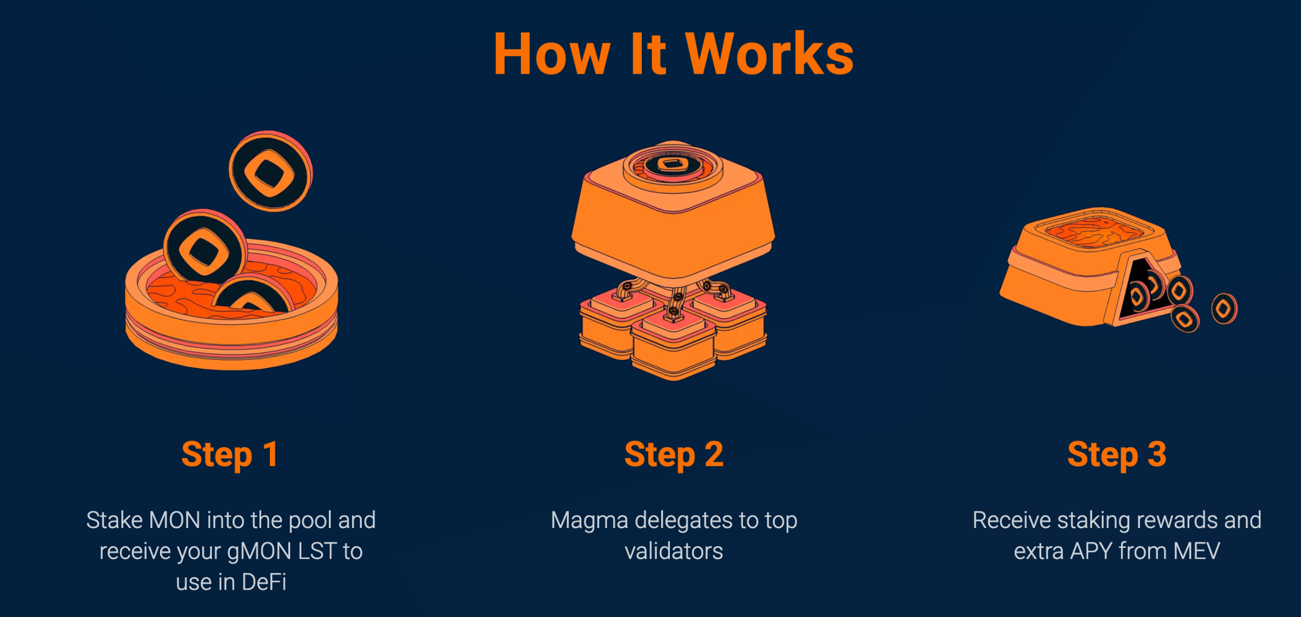 Magma将流动性质押视为一种主动的金融原语,而非被动收益工具,通过重新设计质押机制以适应如Monad这类高性能区块链的速度与资本动态。通过将MEV(矿工可提取价值)捕获直接整合进质押收益,Magma将收益来源从通胀驱动的奖励转向反映真实网络活动和使用强度的价值创造。借助分布式验证器技术及未来的再质押集成,Magma将质押定位为多层经济安全与收益的来源,而非单一链上机制。