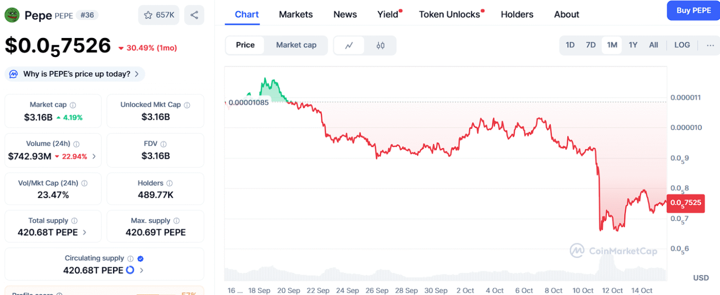 Pepe最初虽是模因概念,但已发展为低市值领域的实力选手。在年初经历大幅上涨后,Pepe保持着强大的社区参与度和鲸鱼积累模式,暗示着进一步上涨空间。模因币往往引领早期周期反弹,因为它们能吸引散户关注,Pepe已成为继狗狗币和Shiba Inu之后最具流动性和知名度的模因资产之一。其当前低价位仍为投资者提供了在抛物线走势前入场的机会。若市场情绪保持乐观,Pepe在下轮上涨中的百分比涨幅可能超越许多大市值代币。