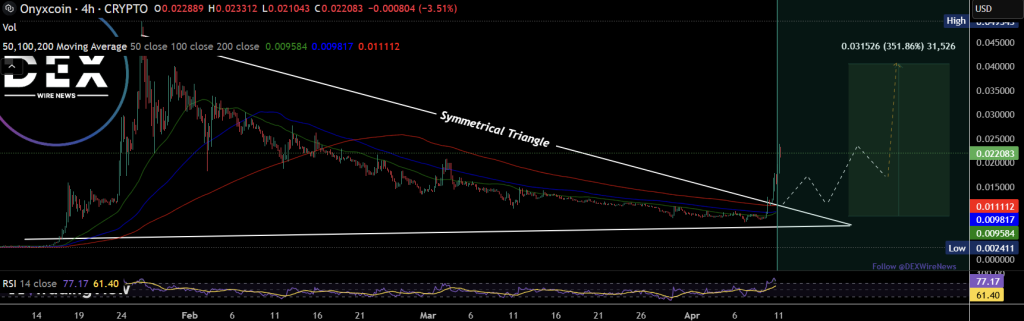 DEX Wire News在TradingView上发布了一则有趣的XCN图表分析。Onyxcoin的4小时图显示,经过数月形成的对称三角形模式出现了明显的看涨突破。这种形态通常预示着价格突破后趋势的强劲延续或反转。