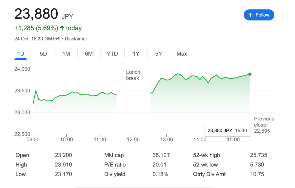 软银股价单日大涨5.69%至23,880日元收盘,市场对融资消息反应正面。23,170-23,910日元的强劲交易区间凸显投资者信心增强。