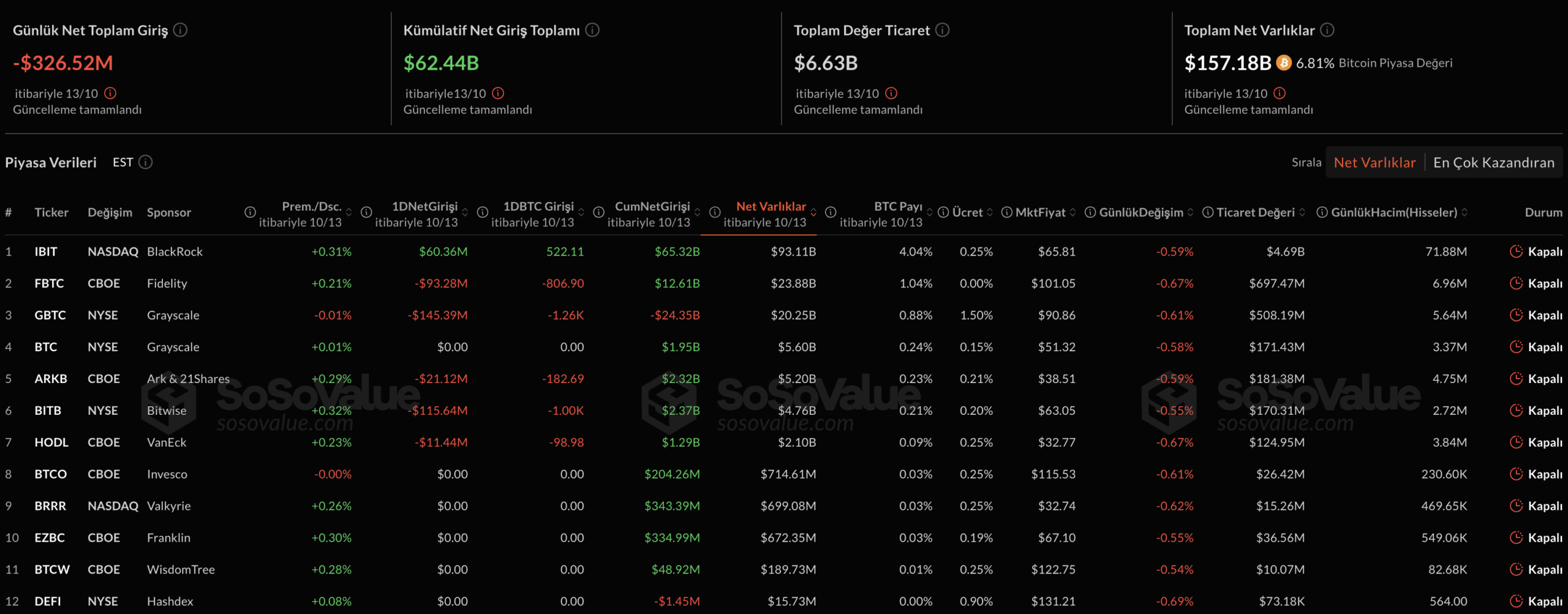 10月13日美国比特币现货ETF遭遇3.27亿美元巨额净流出