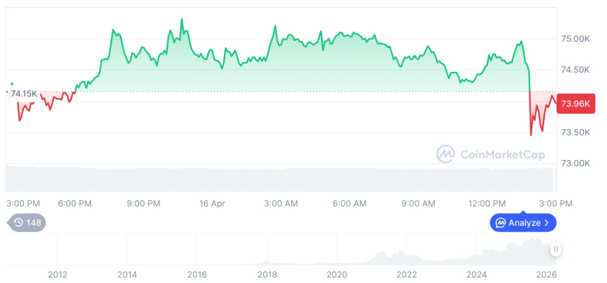 截至发稿时,比特币仍在该水位下方整理,CoinGecko数据显示其市值已缩减至1.355万亿美元,对山寨币的主导地位也同步下滑至56.5%以下。