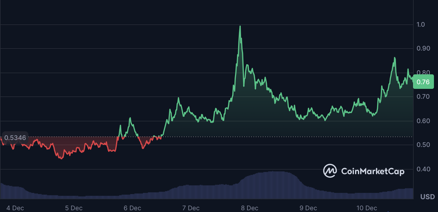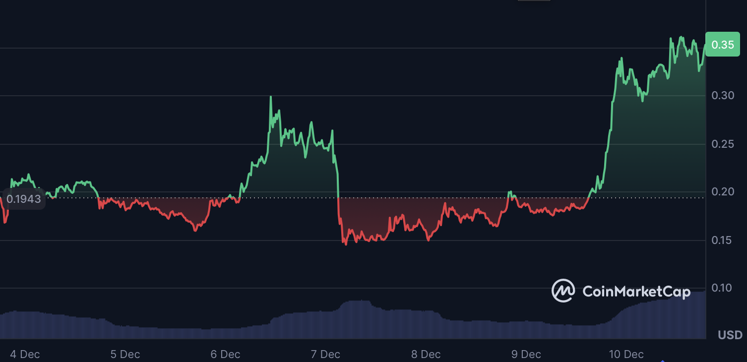 Pieverse周内涨幅达50.8%,其在币安和OKX的重大交易所上线以及与DeAgentAI的新集成持续推动这轮已延续数周的拉升行情。该代币过去一个月228%的涨幅在币安推出40倍永续合约后得到进一步放大,这显著提升了全市场的投机活跃度。