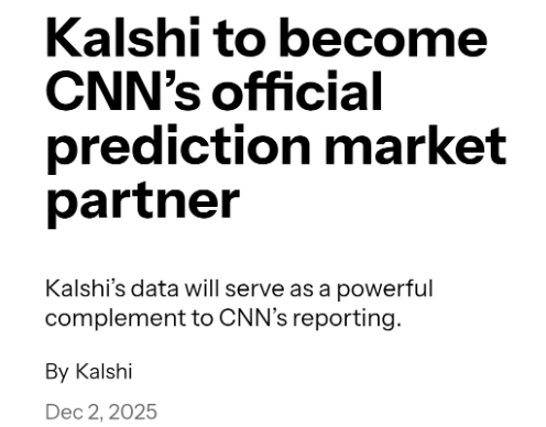 Kalshi通过与CNN建立的独家合作正式进入媒体视野,这也是预测市场平台首次为大型新闻机构提供数据支持。