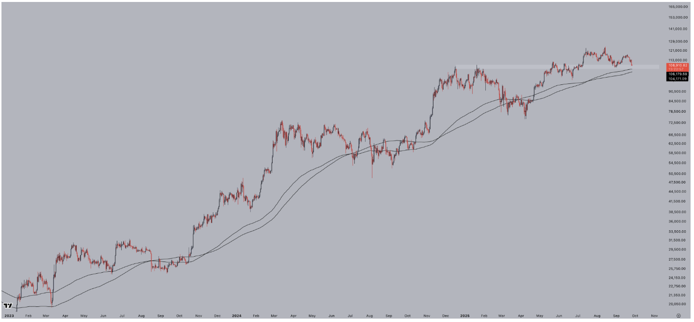 相反观点认为这次回调属于健康修正。知名交易员Jesse指出200日均线可能形成支撑,比特币或在104,000-106,000美元区间筑底。