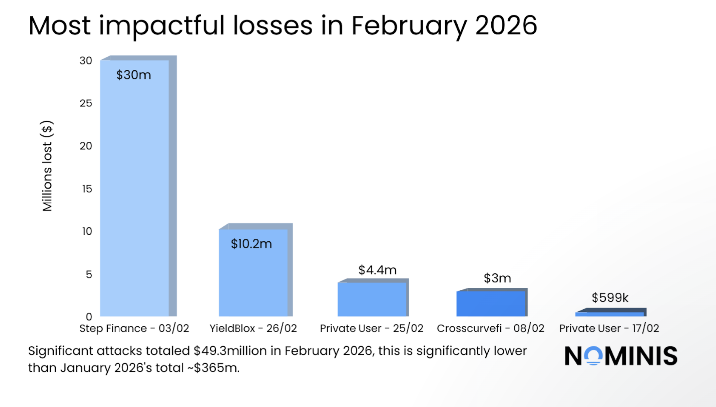 相关阅读:区块链安全公司 PeckShield 称,2 月份加密货币损失额降至 4900 万美元,为近一年来最低水平。尽管 2 月份因黑客攻击和代码漏洞造成的总损失价值有所减少,但网络钓鱼和社会工程诈骗案件有所增加。