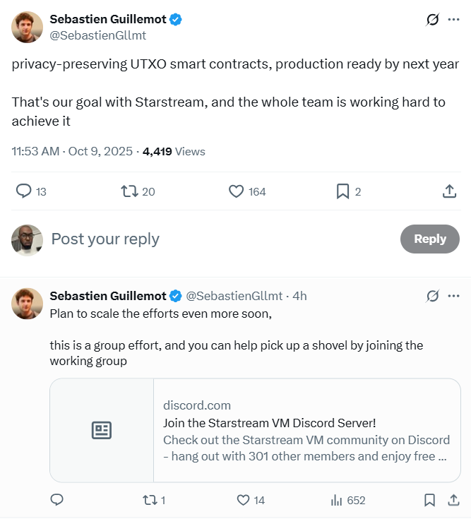 卡尔达诺开发者Sebastien Guillemot透露了与Hydra同步开发的Starstream项目新进展。他在近期发文中表示,团队目标是在明年使Starstream具备生产环境应用能力。该项目将专注于为Midnight Network构建采用零知识证明(ZK)技术的隐私保护型智能合约。