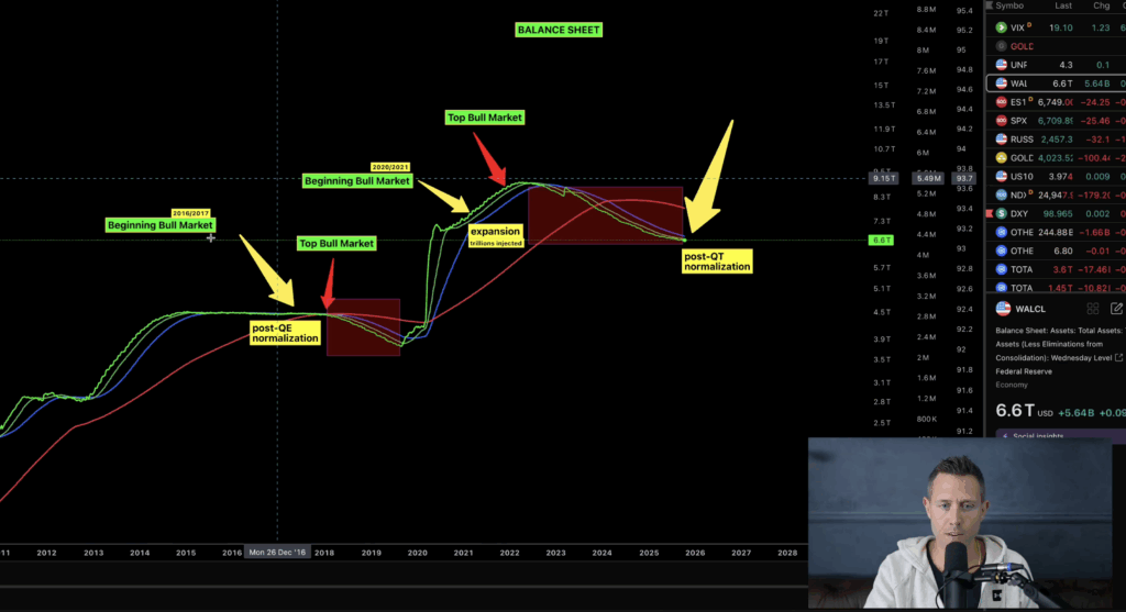 Gambardello将美联储资产负债表数据叠加至比特币图表,显示加密市场在超预期延长的量化紧缩中保持强势。分析师指出,在这场"极度延长的QT周期"中,比特币呈现"高点更高、低点更高"的走势,与持续压制的市场预期背道而驰。