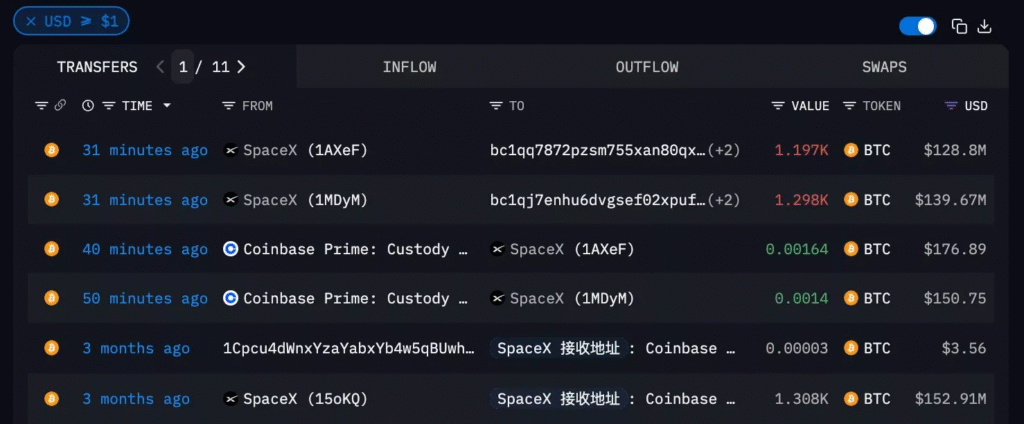 SpaceX时隔三月转移价值2.68亿美元的2395枚比特币
