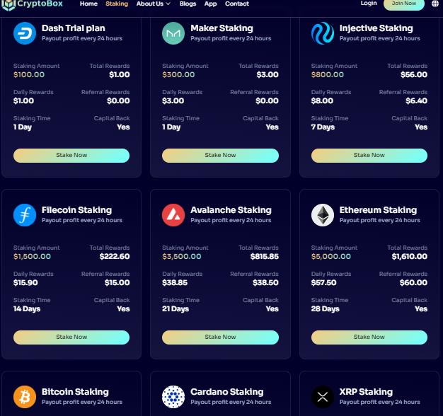 CryptoBox不仅仅是一个质押平台;它是一个为那些在加密货币领域有大梦想的人提供的全方位解决方案。无论您是质押、收益耕作,还是通过推荐建立被动收入,CryptoBox都提供了使您的加密之旅盈利的工具和奖励。立即创建CryptoBox账户,并获得即时100美元奖金,从第一天开始就踏上财富之路。