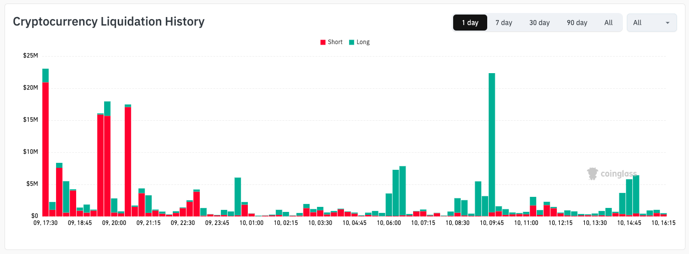 尽管价格行为相对平静,但交易所的爆仓量依然居高不下。根据CoinGlass数据,截至撰稿时的24小时内,整个加密货币市场爆仓金额超过2.5亿美元。