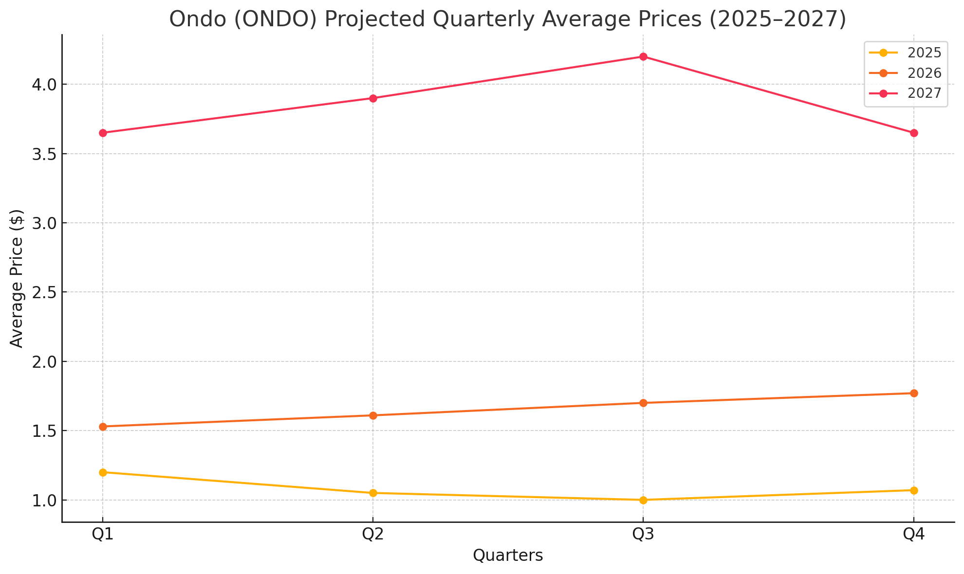 Ondo Finance正进入最关键的三年发展期。从2025年起,在稳步代币化的推动下,ONDO价格可能稳定在1-2美元区间。若机构采用加速,到2027年该代币可能飙升至3-6美元以上区间。