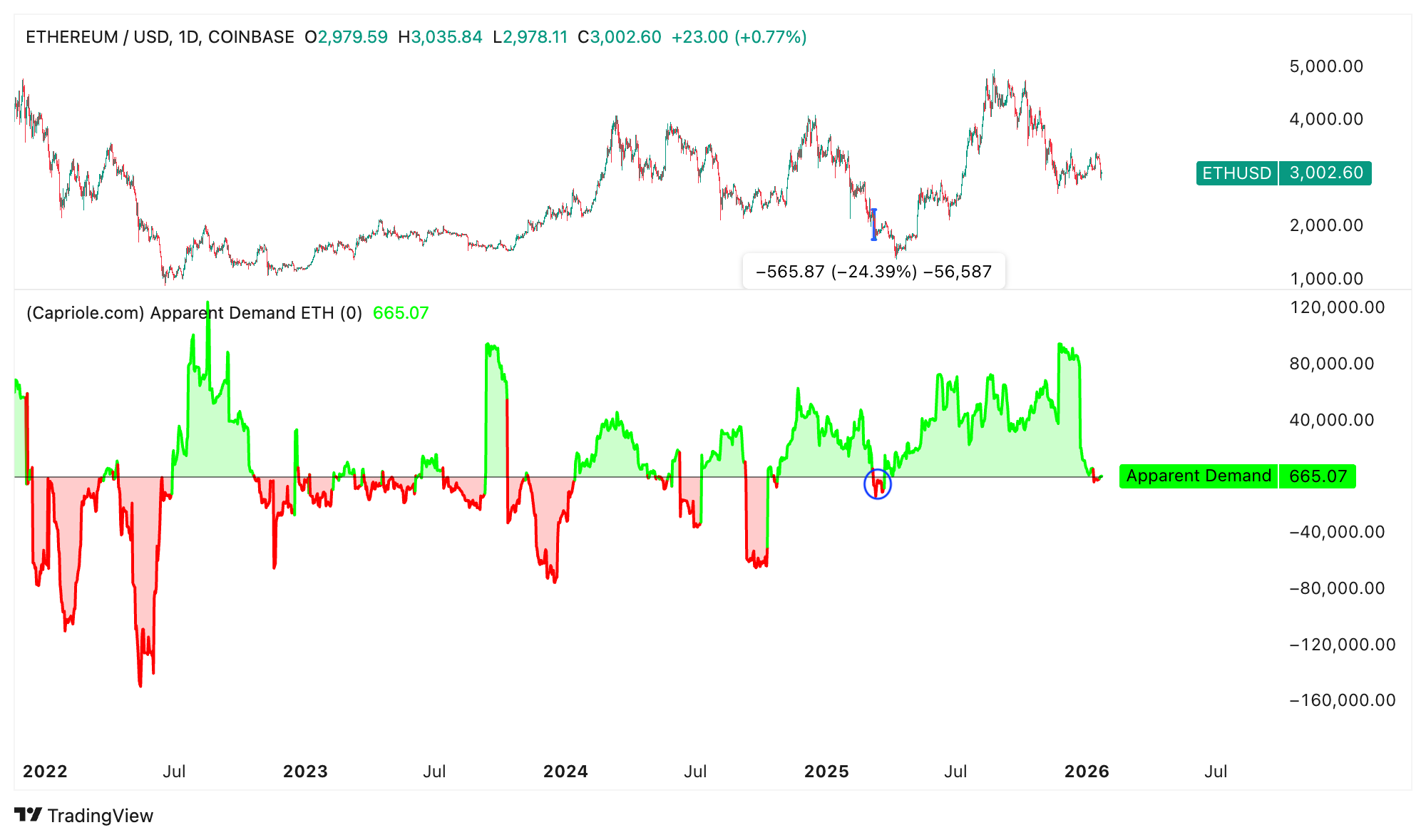 值得注意的是,上次需求如此低迷是在2025年3月,当时价格徘徊在2200美元左右。随后几天内以太坊价格下跌25%,至1750美元。