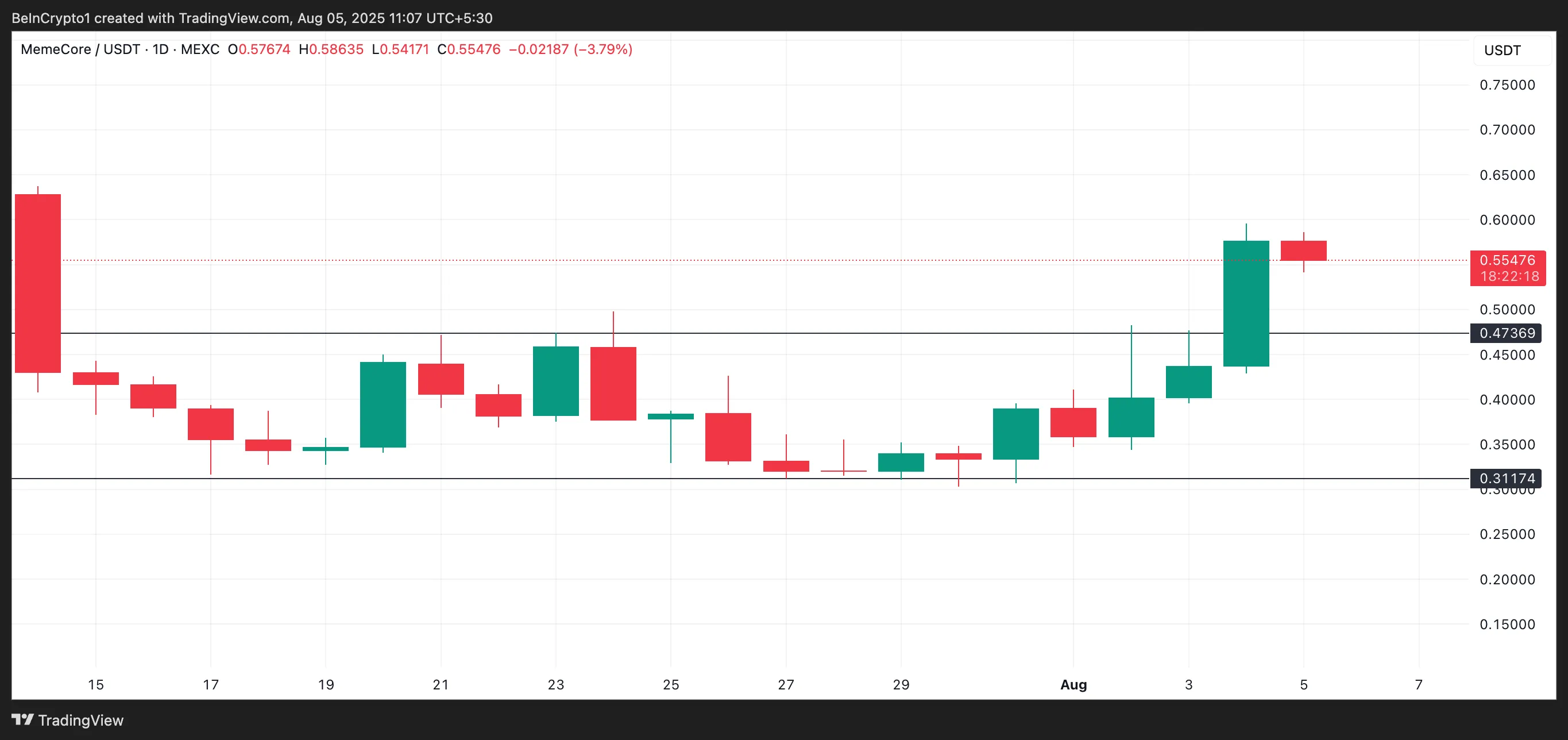 M代币在7月15日至8月4日期间始终徘徊于0.31美元支撑位与0.47美元阻力位构成的狭窄通道内。而当前新需求激增推动其价格成功突破0.47美元关口,标志着市场情绪可能发生转变。