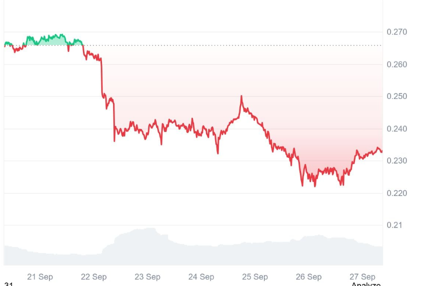 市场对狗狗币ETF的热烈反响为加密货币注入了新动能。交易员正密切关注短期内价格大幅上涨的可能性。ETF上市后24小时内,狗狗币价格上涨5.12%至0.28美元,盘中最高触及0.285美元。分析师目前重点关注0.39美元和0.43-0.45美元的关键阻力位,这些位置可能成为后续走势的重要指标。