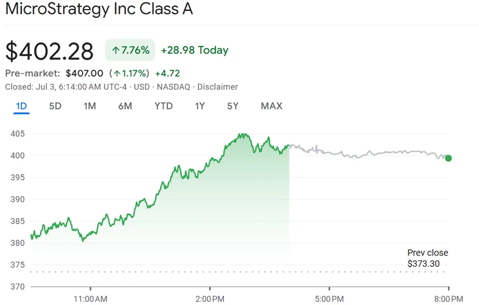 尽管纽约律师事务所Pomerantz LLP周三对MicroStrategy(现称Strategy)提起集体诉讼,该公司股价仍延续涨势。周四盘前交易中,MSTR股价达到407美元,延续了周三收盘上涨7.76%至402.28美元的强势表现。