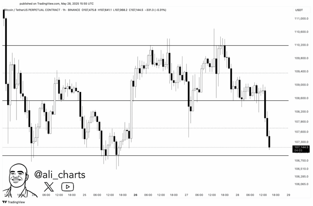 知名专家Ali Martinez持相似观点:"所有人都在关注106,800美元支撑位。"他补充道,若比特币失守该支撑,"可能引发更大波动。"