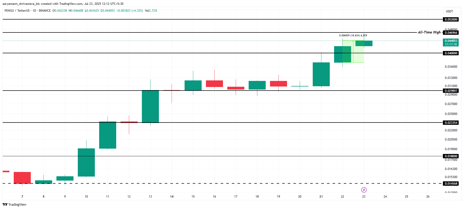 若要维持上升动能,需巩固投资者支持。若能保持当前买盘压力,PENGU有望突破0.046美元前高,冲击0.052美元乃至更高目标。市场信心将成为持续增长的关键因素。