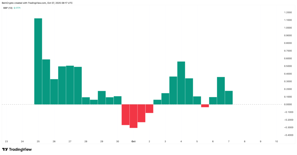 多空能量指标(BBP)自10月5日转正,确认买方主导;