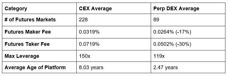 中心化交易所的费率压力:DEX将期货费率压低17-30%后,中心化交易所面临降低成本或通过客户服务、法币通道、合规性等其他因素实现差异化的压力