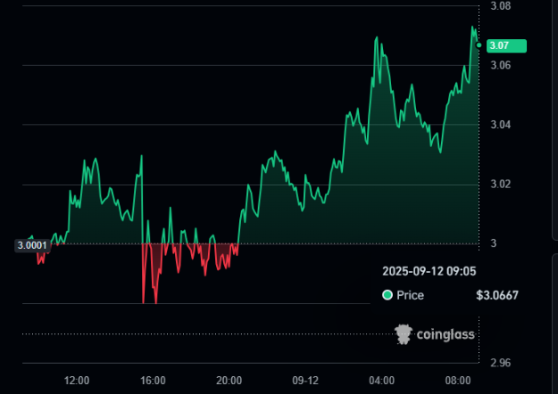 只要维持在3美元上方,短期前景仍偏乐观。有利的市场结构和强劲需求为测试更高阻力位创造条件。尽管存在巨鲸活动,多个时间维度的动能指标均显示市场信心稳固。