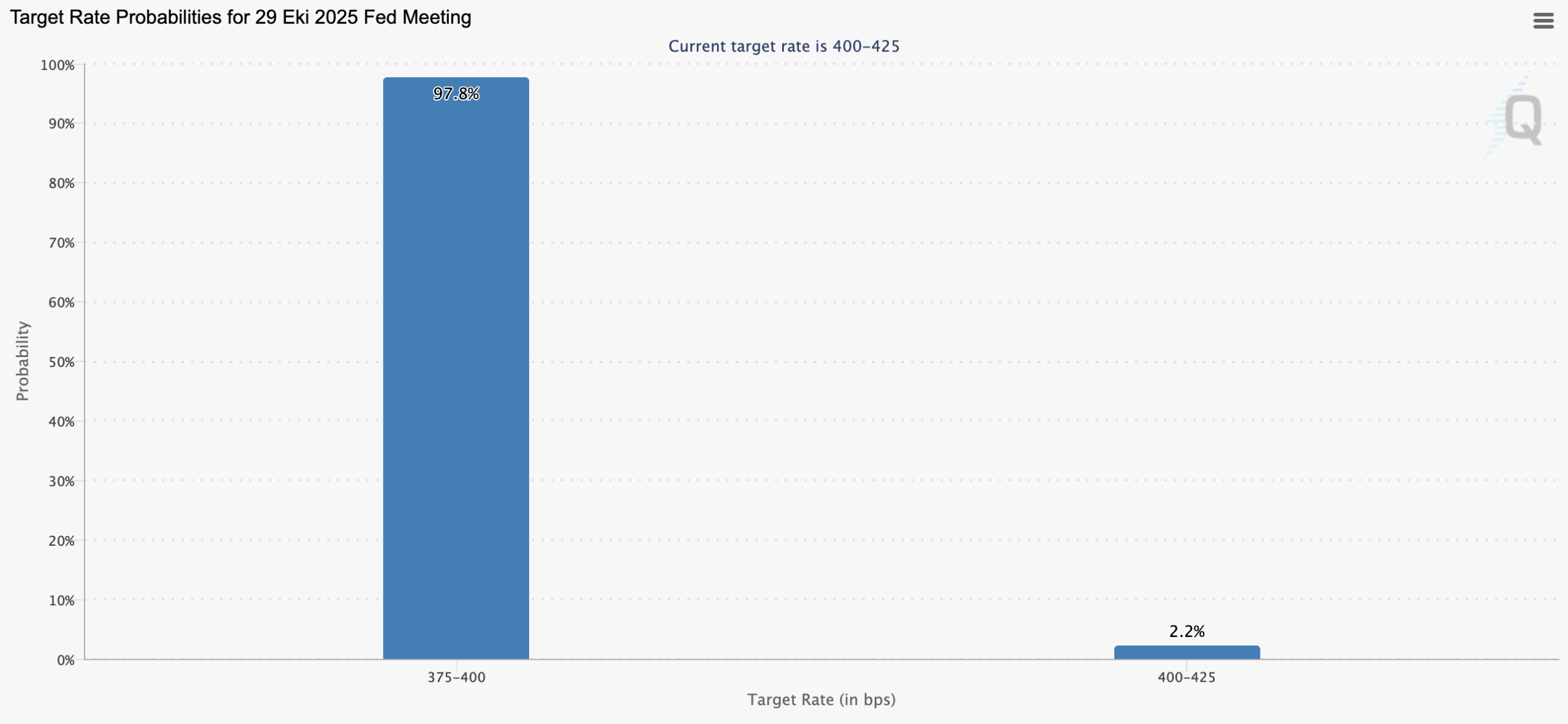 货币政策方面,CME FedWatch工具显示市场预计2025年10月29日美联储会议有98%概率实施25个基点降息。在为期四年的暂停后,9月启动的降息周期正逐步放松金融条件并提振风险偏好。持续的鸽派倾向,叠加ETF资金流入和黄金引发的估值缺口可能闭合,使市场测试新高的前景保持活跃。