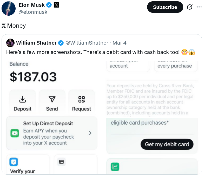 X Money:马斯克“万能应用”愿景的组成部分