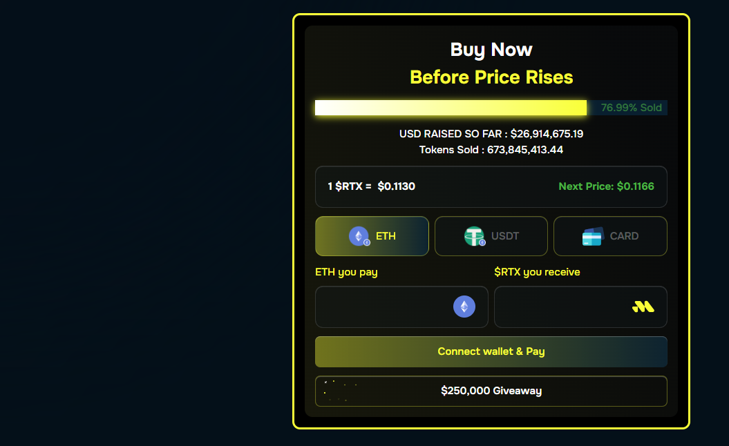 其代币RTX当前预售价0.1130美元,后续将登陆BitMart等交易所。虽然功能相对单一,但仍是今年最成功的ICO预售之一。