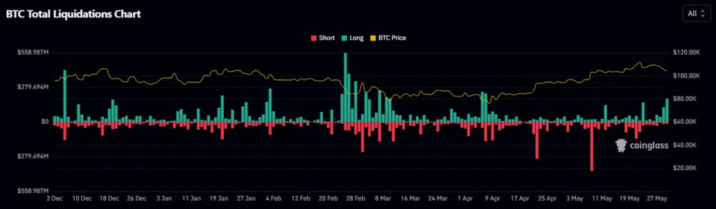 看跌/看涨比率证实多数投资者原预期价格上涨。不出所料,这导致比特币再次经历杠杆挤兑。周五多头爆仓金额达2.05亿美元,创下五月单日最高纪录,同期空头爆仓仅1410万美元。