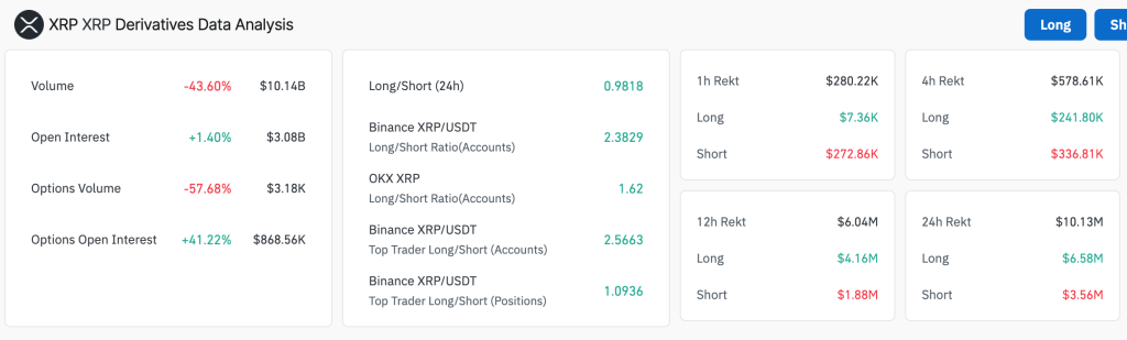 报告显示,XRP衍生品的未平仓合约增加了1.4%,达到30.8亿美元,这表明更多资金正在进入XRP市场。