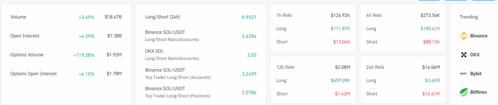 衍生品市场活跃度显著提升,期货交易量接近184.7亿美元,未平仓合约达73.8亿美元。期权交易量增幅超119%,达到192万美元。这些增长表明市场策略布局正在全面扩展。