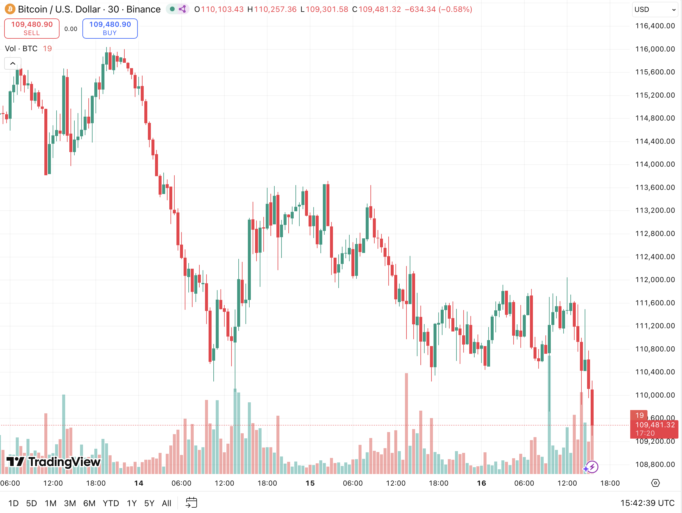 TradingView数据显示,在比特币价格于10.9万美元附近震荡之际,市场波动性显著加剧。众多交易者正密切关注机构资金会否在此关键支撑区域重新入场。