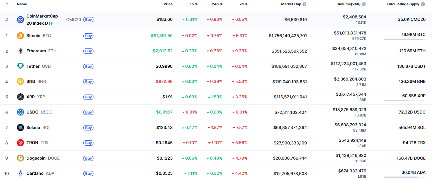 新一周伊始,空头持续掌控市场,据CoinMarketCap数据显示。