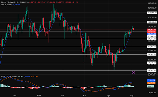 比特币价格稳居96,000美元上方